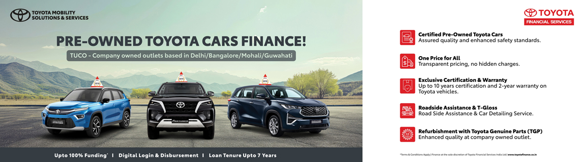 Toyota Certified Pre Owned cars at TUCO- company owned outlets promise high standards of quality, safety, and reliability. Each vehicle undergoes a rigorous certification process and refurbishment using Toyota Genuine Parts (TGP) at Toyota’s own facility, ensuring long term performance and peace of mind. With transparent one price assurance, there are no hidden costs—just complete confidence from day one.